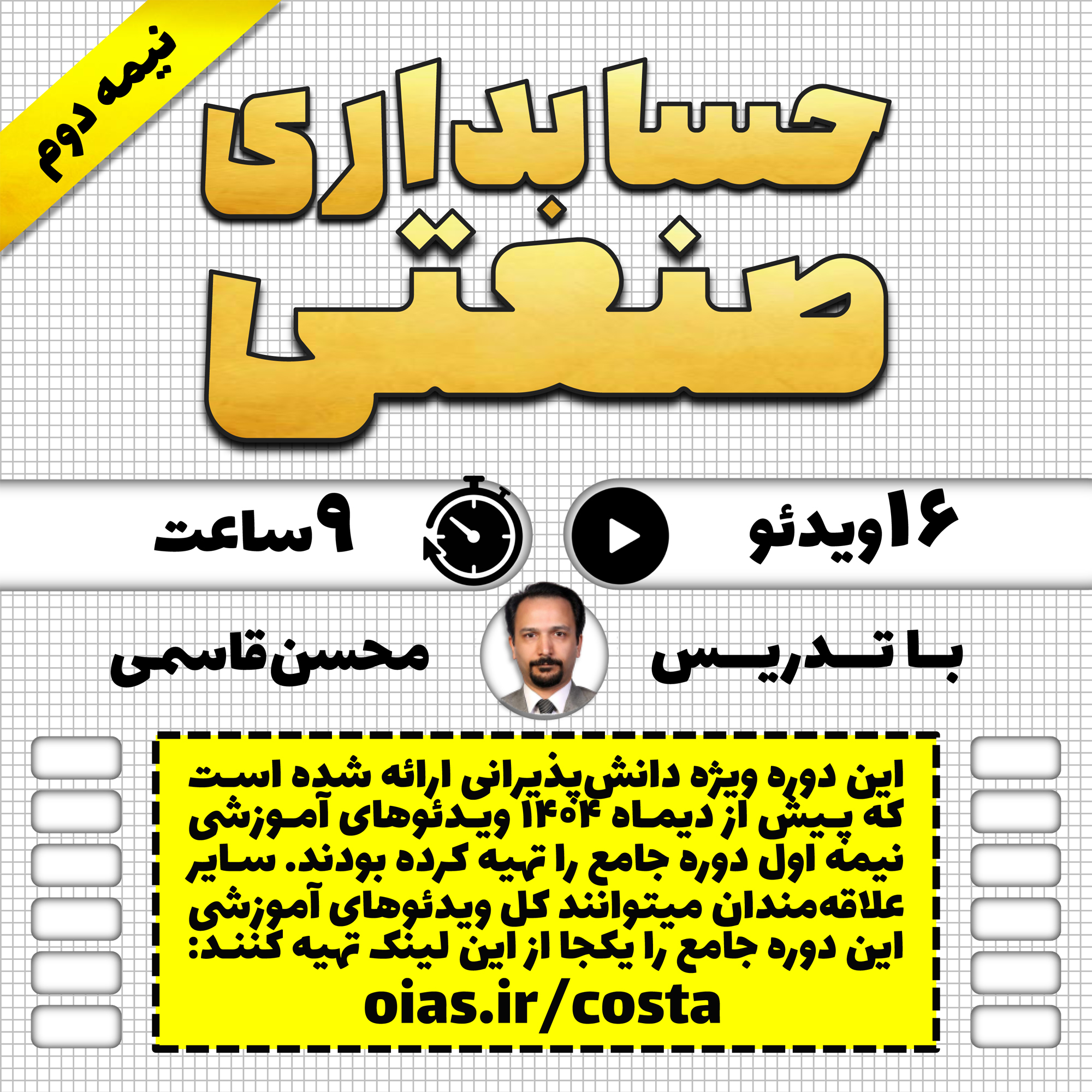 این دوره ویژه دانشپذیرانی ارائه شده است که پیش از دیماه 1404 نیمه اول ویدئوهای آموزشی این دوره جامع را تهیه کرده بودند. سایر علاقهمندان میتوانند کل ویدئوهای آموزشی این دوره جامع را بطور یکجا از این لینک تهیه کنند: oias.ir/costa -- مباحثی که در نیمه دوم این دوره جامع پوشش داده شده است عبارتند از: 9) روش ارزشیابی استاندارد (تحلیل انحرافات + حسابداری (ثبتها))؛ 10) بهایابی جذبی و متغیر؛ 11) بهایابی محصولات مشترک (اصلی و فرعی)؛ 12) تحلیل بها، حجم و سود (CVP)؛ 13) تحلیل سودناخالص؛ 14) بودجهبندی جامع در شرکتها (عملیاتی و مالی)؛ و 15) بودجهبندی سرمایهای